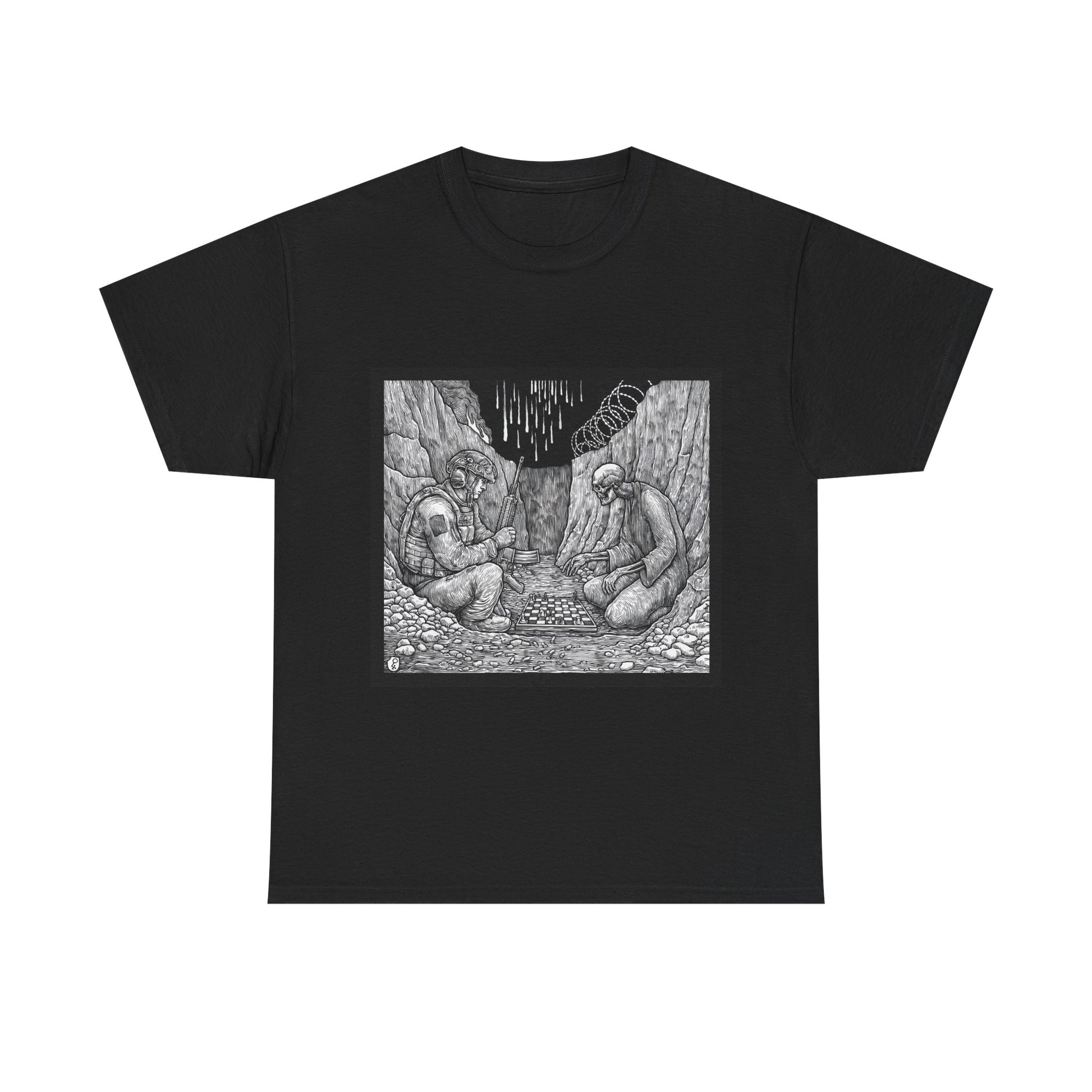 Gothic and edgy, this chess-themed cotton tee is perfect for those looking to make a statement. The classic fit ensures comfort and versatility, making it suitable for any occasion, casual or semi-formal. Ideal for adults who appreciate unique and bold designs, this tee is perfect for Halloween, gothic events, and everyday wear. Product features - Shoulder tape for added stability - Ribbed knit collar for elasticity - Made with strong and smooth fabric - 100% US cotton for sustainability - Dual Printing Techniques for detailed designs Care instructions - Machine wash: warm (max 40C or 105F) - Non-chlorine: bleach as needed - Tumble dry: medium - Do not iron - Do not dryclean