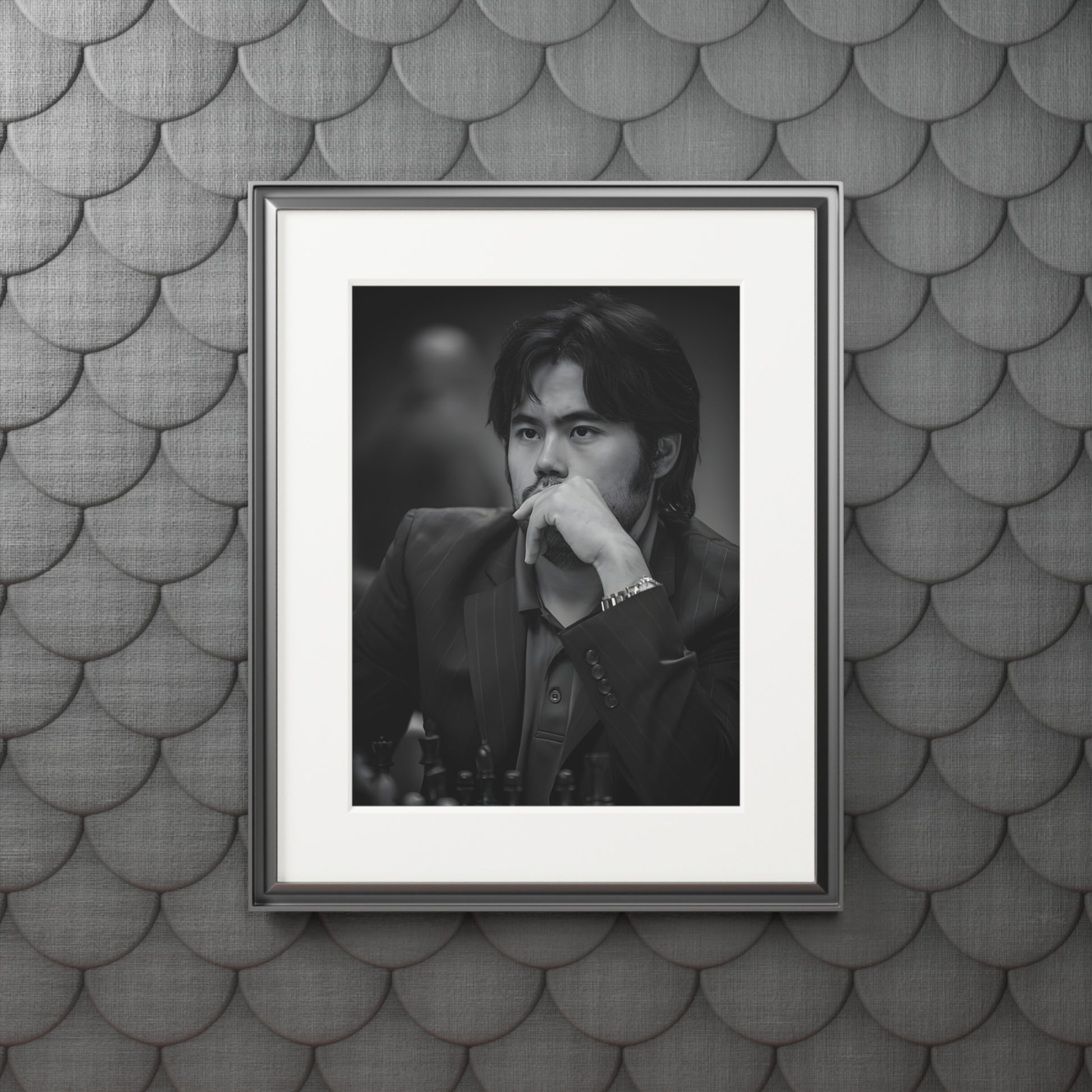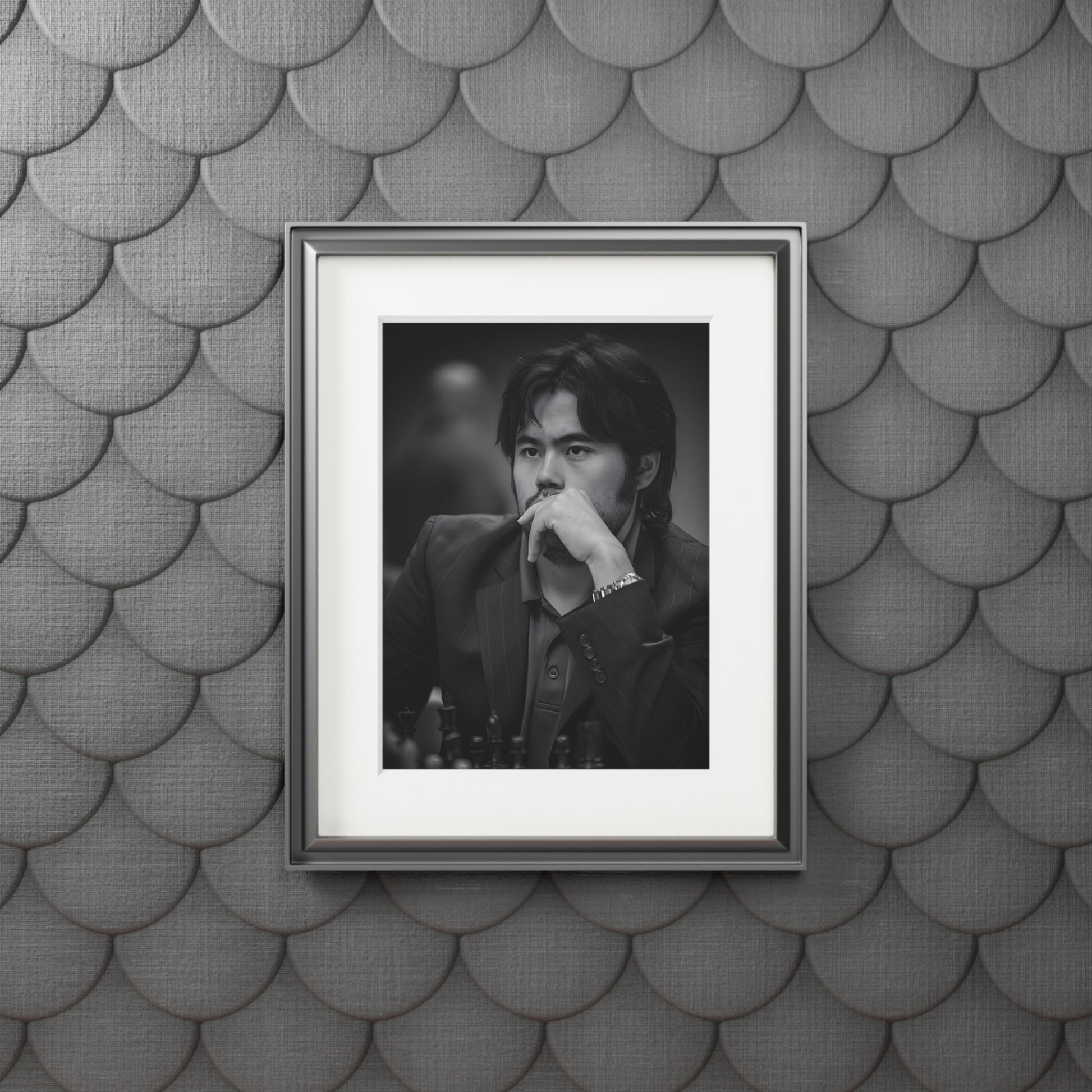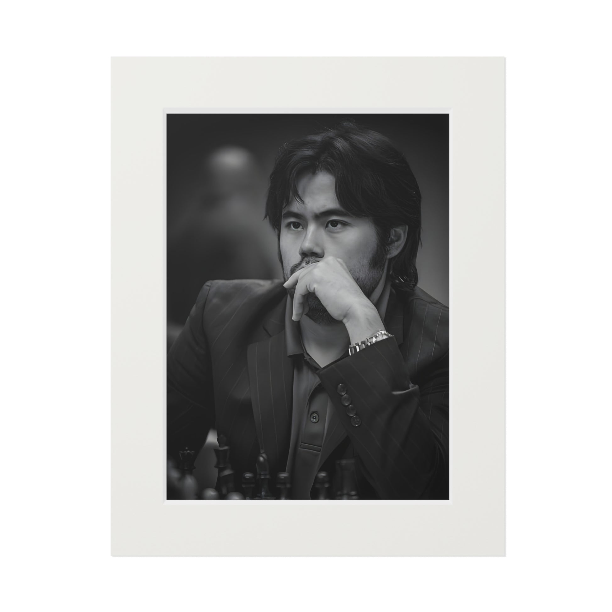 Elegant chess prints of champion Hikaru Nakamura, perfect for chess enthusiasts looking to add a touch of elegance and inspiration to their space. Ideal for chess lovers, chess players, and fans of Hikaru Nakamura. Great for decorating homes, offices, or game rooms. Relevant for birthdays and holidays. Product features - Premium 175gsm fine art paper - Available in 2 sizes: 11" × 14" or 16" × 20" - Bright and intense colors that won't fade - Thick, 2mm window cut cardboard frame for a premium look - Natural white frame color for a classic finish Care instructions - Wipe the dust off gently with a soft, dry cloth.
